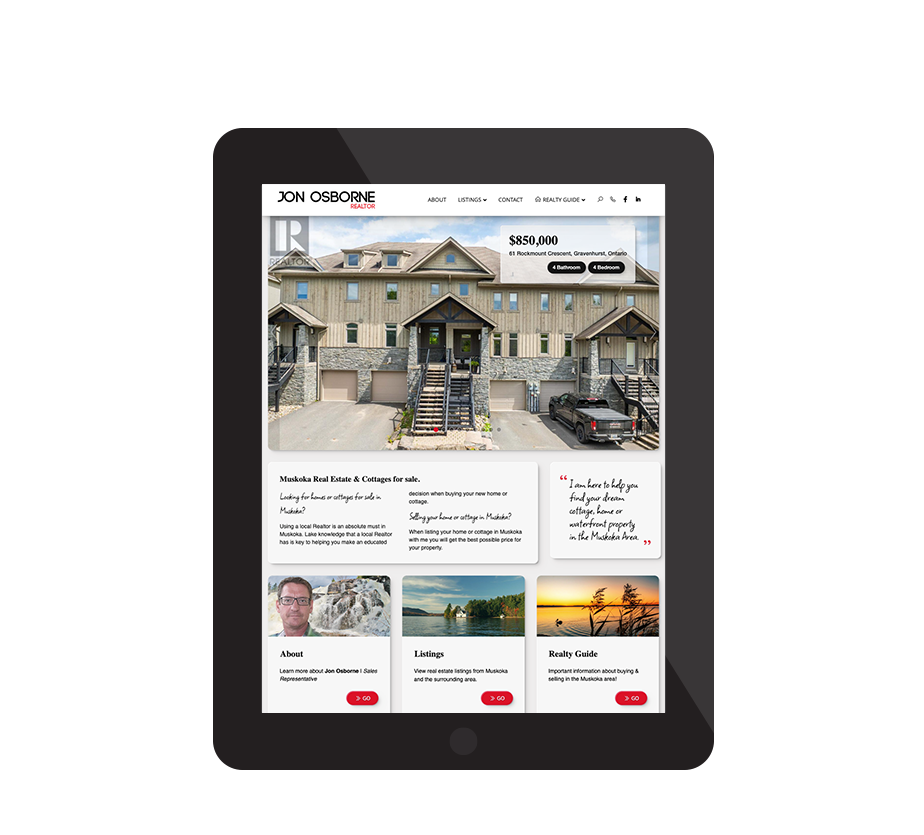 This website was developed for a local Realtor in the Muskoka, Ontario area. Muskoka Life offers Real Estate services for buyers/sellers. The client required the website to have a definite Muskoka feel, but bring it up to speed in terms of today's design aesthetics and functionality.